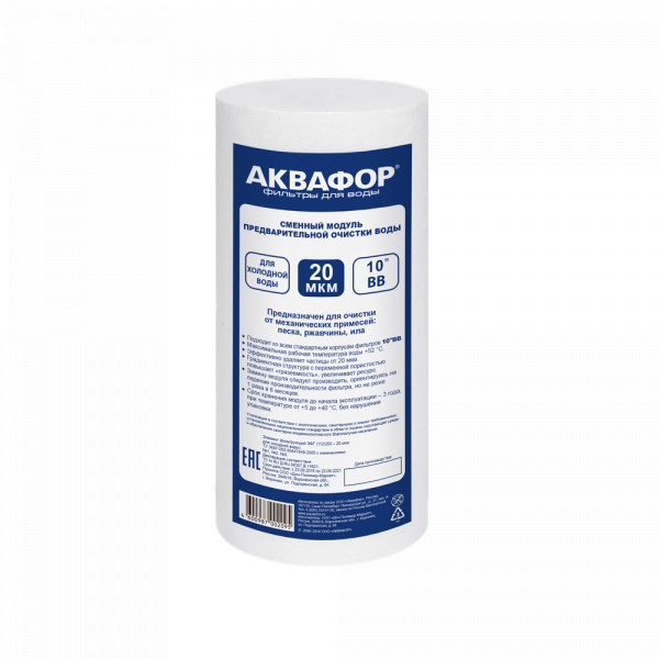 • Сменный модуль для очистки холодной воды от видимых растворенных взвесей - песка, ржавчины и других механических примесей. Обеспечивает базовую предочистку воды во всей квартире, при этом напор остается практически без изменений. В зависимости от степени загрязнения, выбирайте картриджи пористостью 5 или 20 микрон.