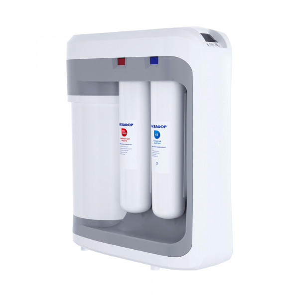 О замене картриджей напомнит звуковая и цветовая индикация ресурса каждого модуля. Встроенный насос обеспечивает стабильную работу даже при низком давлении от 0,9 атм.